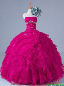 Hot Pink Quinceanera Dress Sweetheart Organza Beading A-line