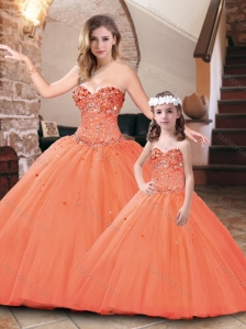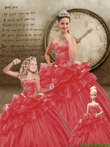 Best Selling Really Puffy Beaded Princesita Quinceanera Dresses in Orange Red