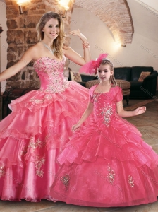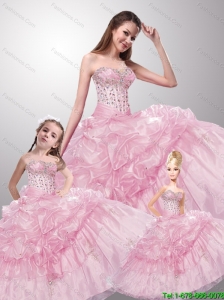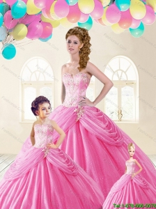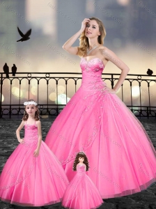 Custom Made Beaded and Applique Princesita with Quinceanera Dresses in Pink
