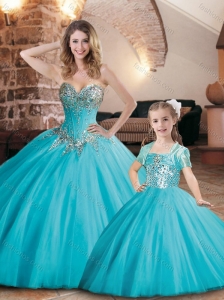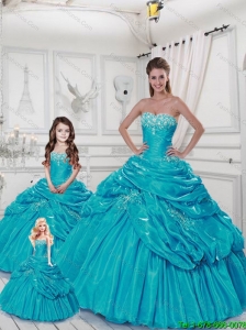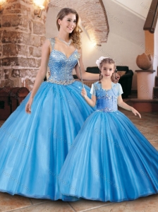 Fashionable Beaded Bodice Princesita Quinceanera Dresses in Aqua Blue