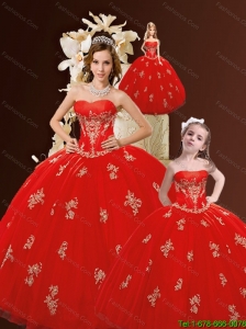 1. Inexpensive Red Quinceanera Dress Strapless Tulle Lace Appliques Ball Gown
