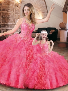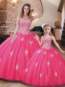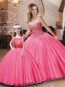 2016 Pretty Tulle Hot Pink Princesita Quinceanera Dresses with Beading