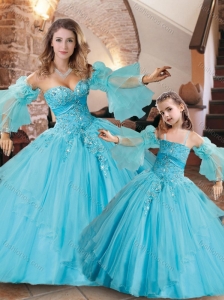 Custom Fit Light Blue Macthing Sister Dresses with Beading and Appliques