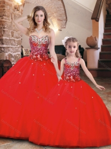 Elegant Beaded Bodice Tulle Princesita Quinceanera Dresses in Red