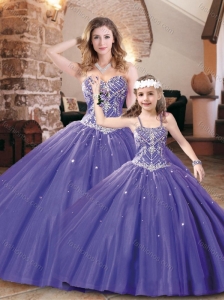 Modern Big Puffy Tulle Purple Princesita Quinceanera Dresses with Beading