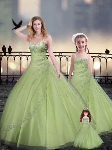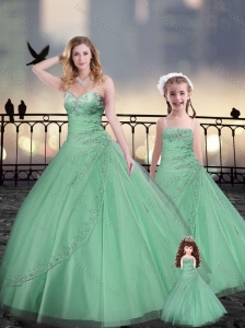 Beaded and Applique Apple Green Princesita with Quinceanera Dresses in Tulle