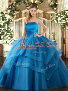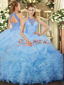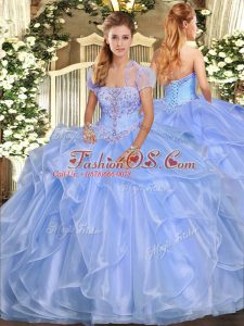 Baby Blue Sleeveless Beading Floor Length 15 Quinceanera Dress