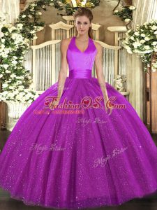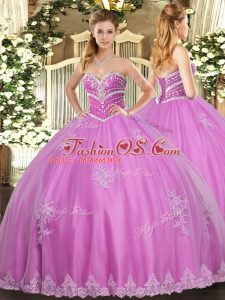 Sweetheart Sleeveless Lace Up Vestidos de Quinceanera Hot Pink Tulle