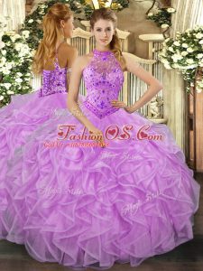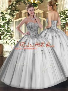 Tulle Sleeveless Floor Length Quinceanera Gowns and Beading