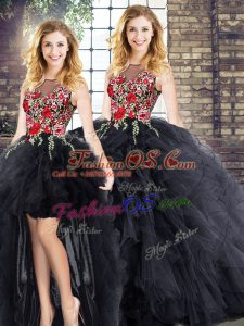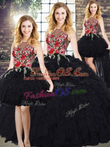 Black Zipper Scoop Embroidery and Ruffles Sweet 16 Dress Sleeveless