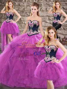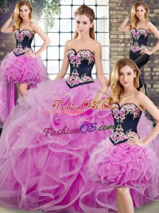 Lilac Sleeveless Embroidery and Ruffles Lace Up Sweet 16 Dresses
