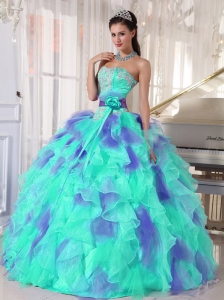 Discount Beaded Bodice and Ruffled Detachable Sweet 16 Dresses in Aquamarine