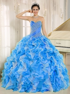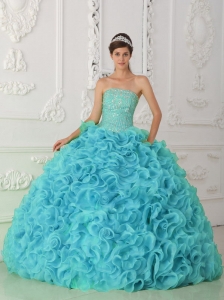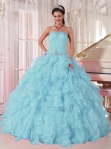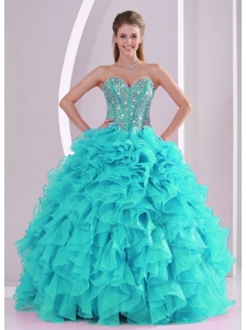 Low Price Aque Blue Perfect Quinceanera Dresses with Beading and Ruffles