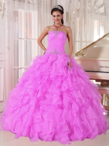 Wonderful Chapel Train Beaded and Ruffled 15 Quinceanera Dresses in Lavender