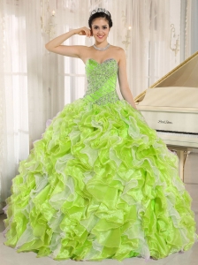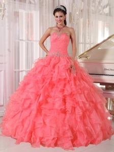 Discount Beaded Bodice and Ruffled Quinceanera Dress with Chapel Train