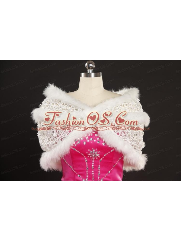 Home >  Accessories >  Wraps > Rabbit Fur Beading Lace White Wraps for 2014