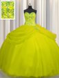 Home >  Quinceanera Dresses >  Luxurious Quinceanera Dresses > Really Puffy Yellow Green Lace Up Sweetheart Beading Quinceanera Gown Tulle Sleeveless