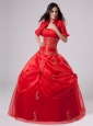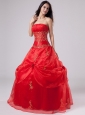 Red 2013 Quinceanera Dress With Embroidery and Pick-ups Organza For Custom Made