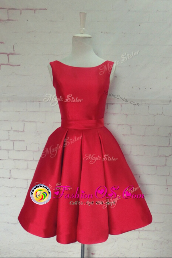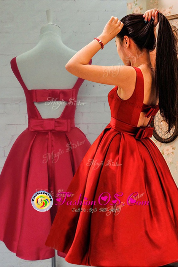 Home >  Prom Dresses >  Perfect Prom Dresses > Red A-line Bowknot Homecoming Dress Backless Satin Sleeveless Knee Length