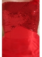 Home >  Prom Dresses >  Short Prom Dresses > Red A-line One Shoulder Prom / Homecoming Dress Organza Sequin Mini-length