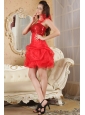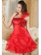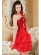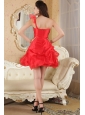 Red A-line One Shoulder Prom / Homecoming Dress Organza Sequin Mini-length