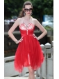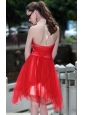 The sweetheart neckline is created from multi-color beadings and sequins.The simple haltr is simple and unique.Cross net in the front shows your figure.Soft net creates an interesting flowy hem.You will be the most conspicuous one in teh part when you wear this red short prom dress.