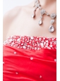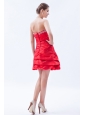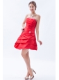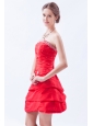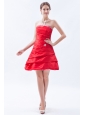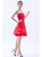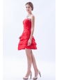 Red A-line / Princess Strapless Prom Dress Taffeta Beading Mini-length