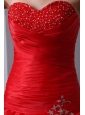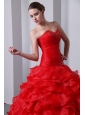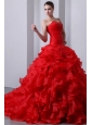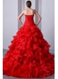 Red A-Line / Princess Sweetheart Beading and Ruffles Quinceanea Dress Brush Train Organza