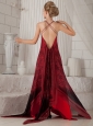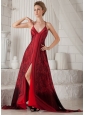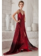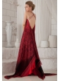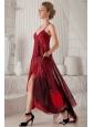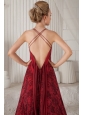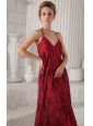 Red A-line Spaghetti Straps Brush Train Printing Mother Of The Bride  Dress