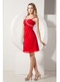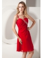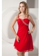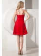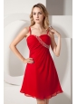 Red A-line Spaghetti Straps Prom / Homecoming Dress Knee-length Beading Chiffon