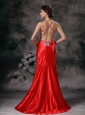Home >  Prom Dresses >  Best Prom Dresses > Red A-line Strap High-low Elastic Woven Satin Appliques Prom Celebrity Dresses