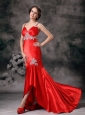 Red A-line Strap High-low Elastic Woven Satin Appliques Prom Celebrity Dresses