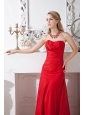 Home >  Bridesmaid Dresses >  Elegant Bridesmaid Dresses > Red A-line Strapless Bridesmaid Dress Taffeta Ruch Floor-length