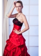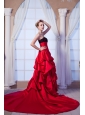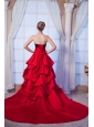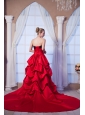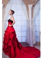 Red A-line Strapless Chapel Train Taffeta Beading and Lace Wedding Dress