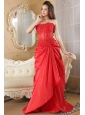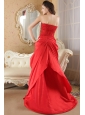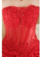 Home >  Prom Dresses >  Beautiful Prom Dresses > Red A-line Strapless Prom Dress Brush Train Taffeta Lace
