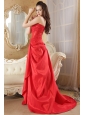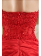 Red A-line Strapless Prom Dress Brush Train Taffeta Lace