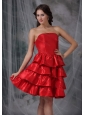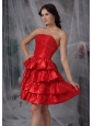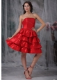 Red A-line Strapless Ruffled Layers Taffeta Dama Dresses On Sale