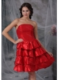 Home >  Special Occasion Dresses >  Dama Dresses for Quinceanera > Red A-line Strapless Ruffled Layers Taffeta Dama Dresses On Sale