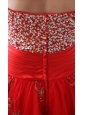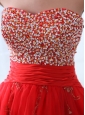 Home >  Prom Dresses >  Fashionable Prom Dresses > Red A-line Sweetheart Knee-length Tulle Prom Dress with Beading and Hand Made Flowers