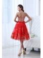Red A-line Sweetheart Knee-length Tulle Prom Dress with Beading and Hand Made Flowers