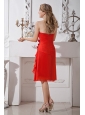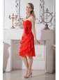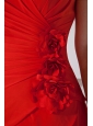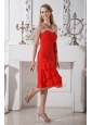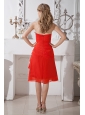 Red A-line Sweetheart Prom / Homecoming Dress Chiffon Hand Made Flowers Knee-length