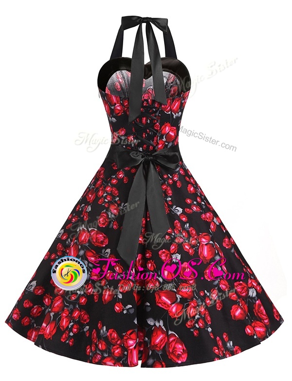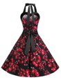 Red And Black Halter Top Neckline Sashes|ribbons and Pattern Dress for Prom Sleeveless Zipper