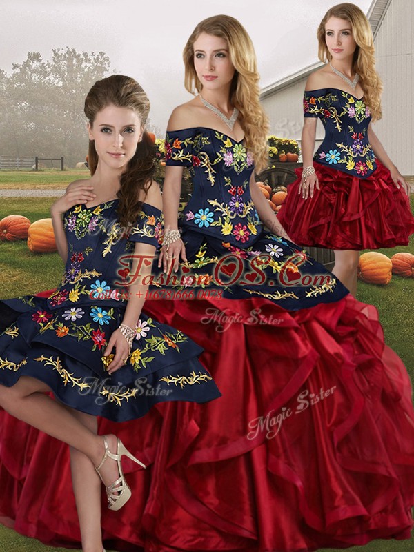 Home >  Quinceanera Dresses >  Detachable Quinceanera Skirts > Red And Black Sleeveless Embroidery and Ruffles Floor Length Ball Gown Prom Dress