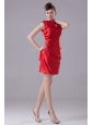 Red and Mini-length For Prom Dress With Taffeta and Bateau