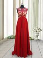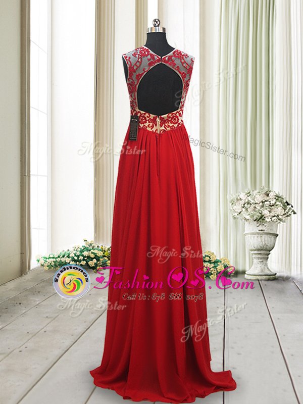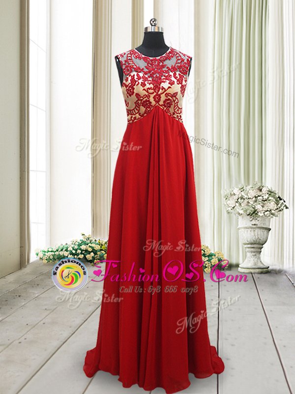Red Backless Scoop Appliques Hoco Dress Chiffon Sleeveless Brush Train