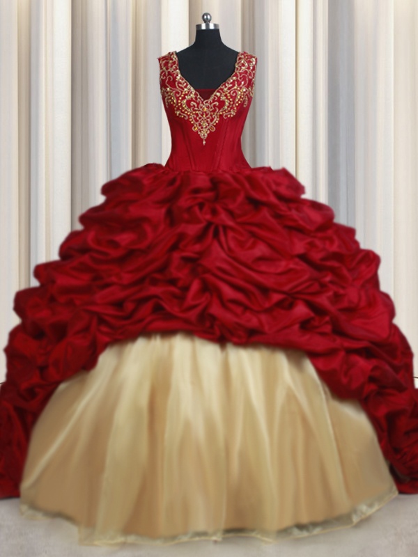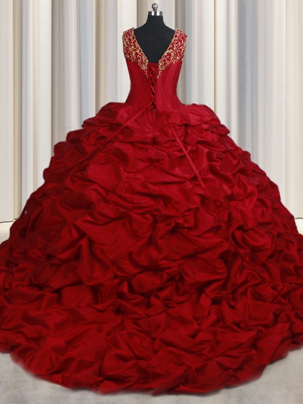 Home >  Quinceanera Dresses >  Cheap Quinceanera Dresses > Red Ball Gowns Beading and Appliques and Pick Ups Ball Gown Prom Dress Lace Up Taffeta Sleeveless