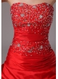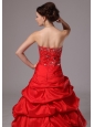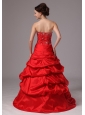 Red Beaded Decorate Up Bodice and Pick-ups Prom Dress For Custom Made In Greensboro Georgia