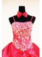 Red Beading and Hand Made Flowers For Little Girl Pageant Dresses