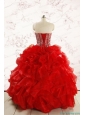 Red Beading and Ruffles Sweetheart Pretty Quinceanera Dresses for 2015