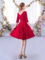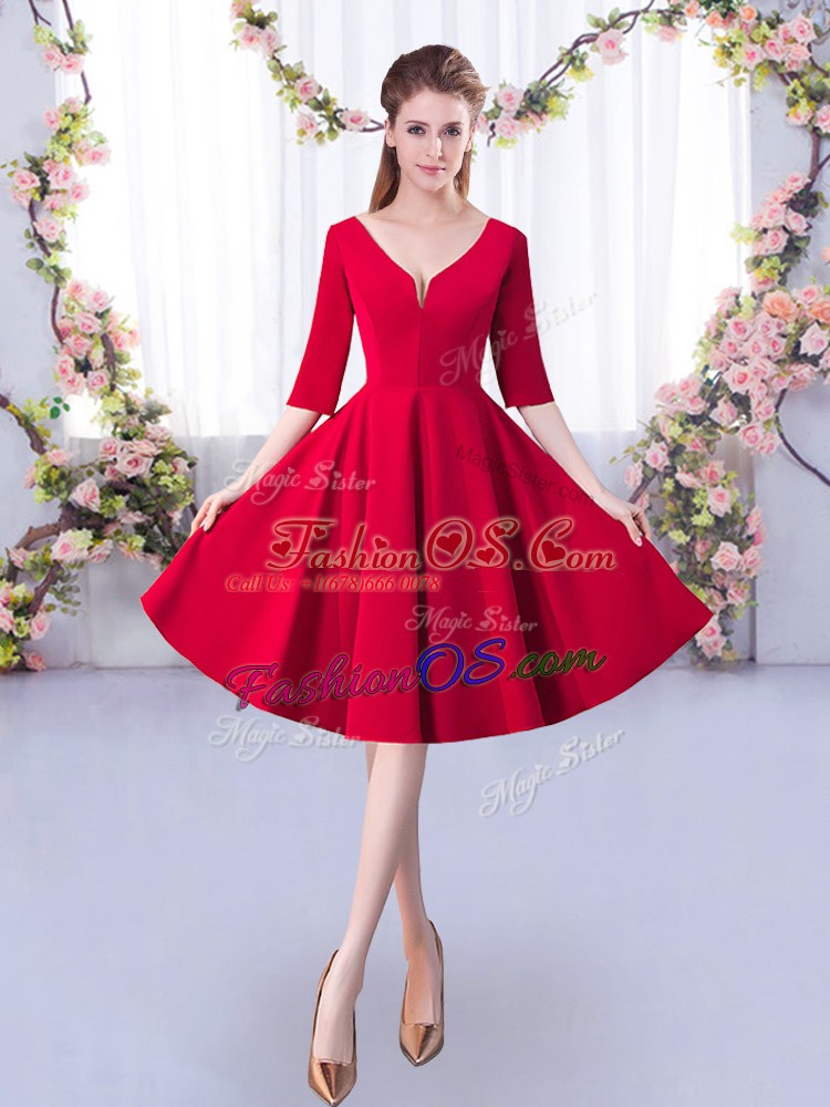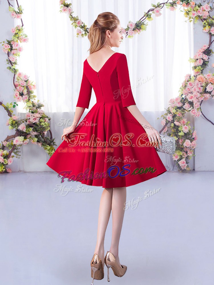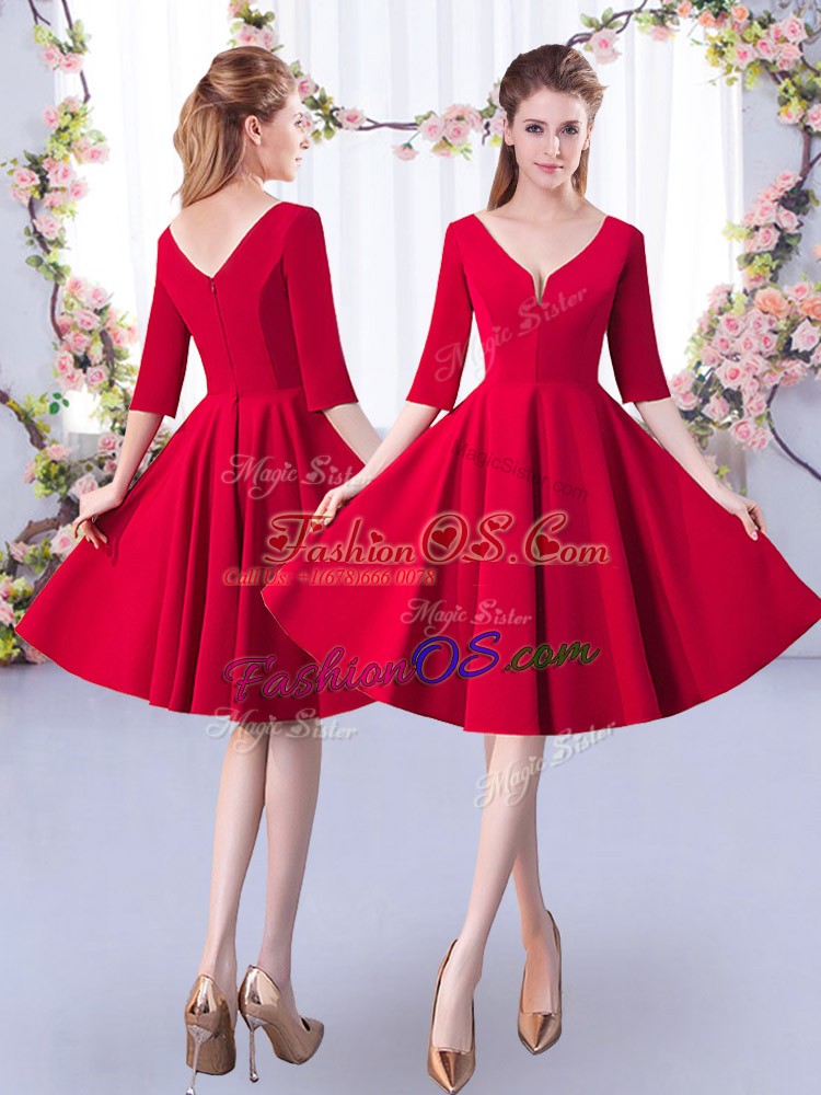 Red Bridesmaid Dress Prom and Party and Wedding Party with Ruching V-neck Half Sleeves Zipper